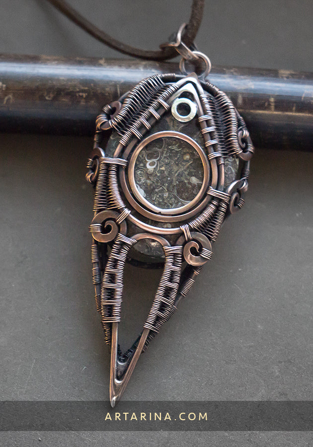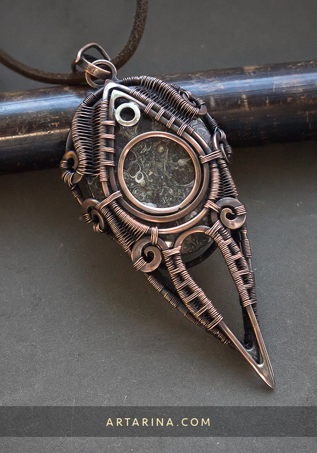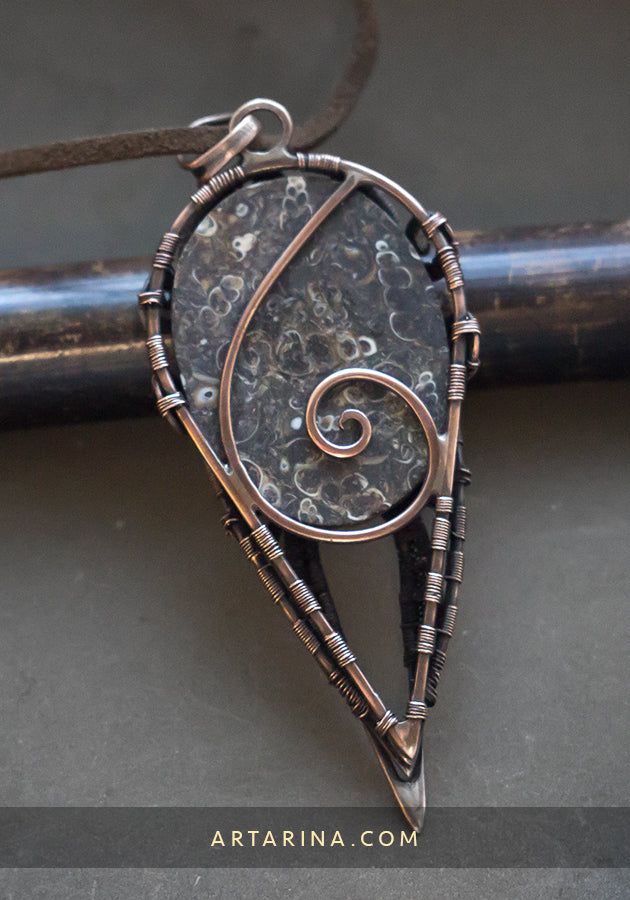 Turritella agate wire wrap pendant