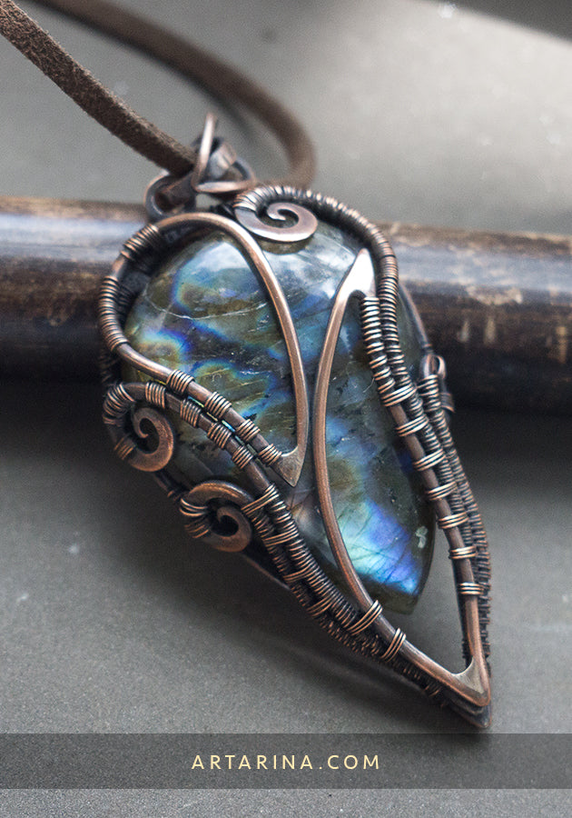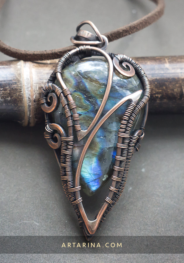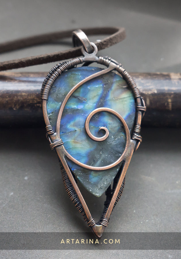Wire wrapped necklace with multicolored labradorite