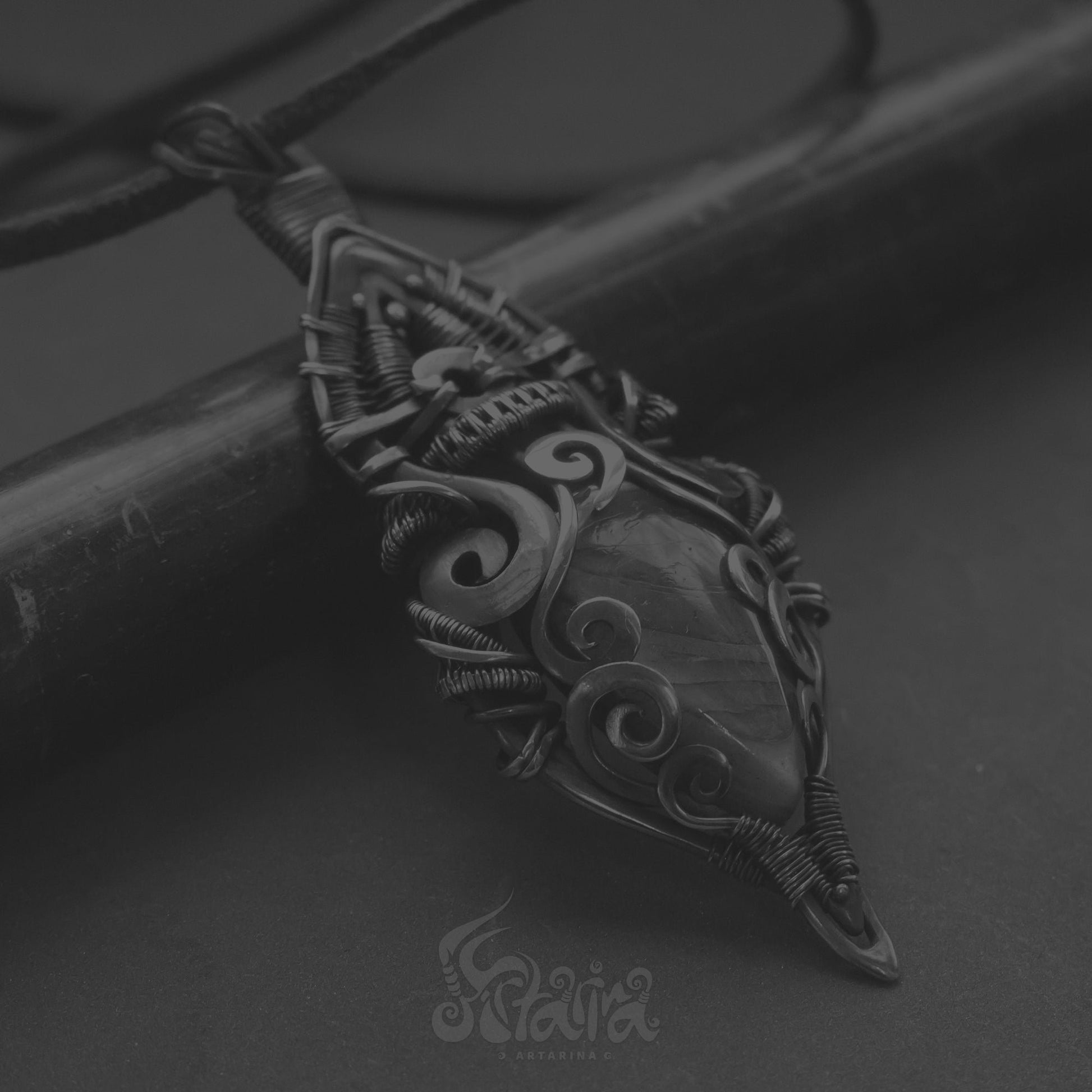 Wire wrapped pendant Naural Stone necklace Elven Forest child Mystical green silver and brown metal and stone Pendant for neck