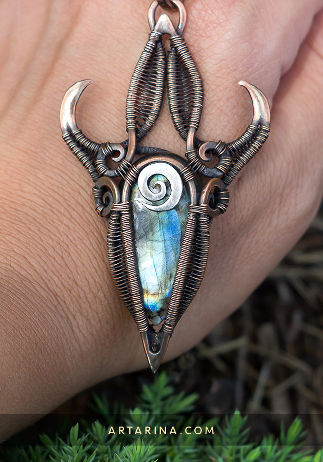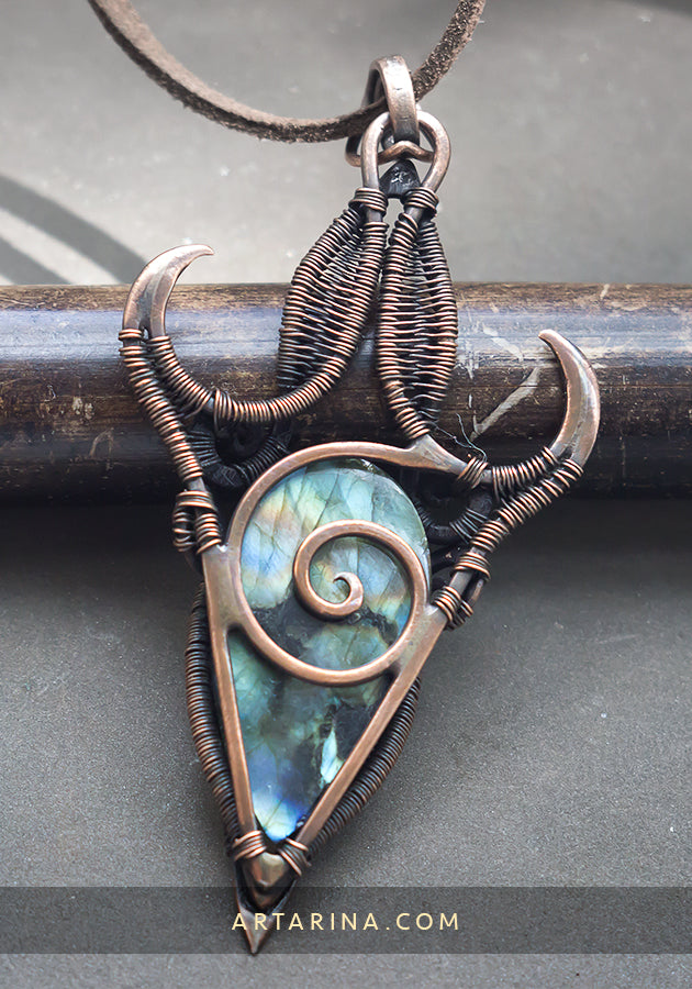 - Copper, Sterling silver, Labradorite