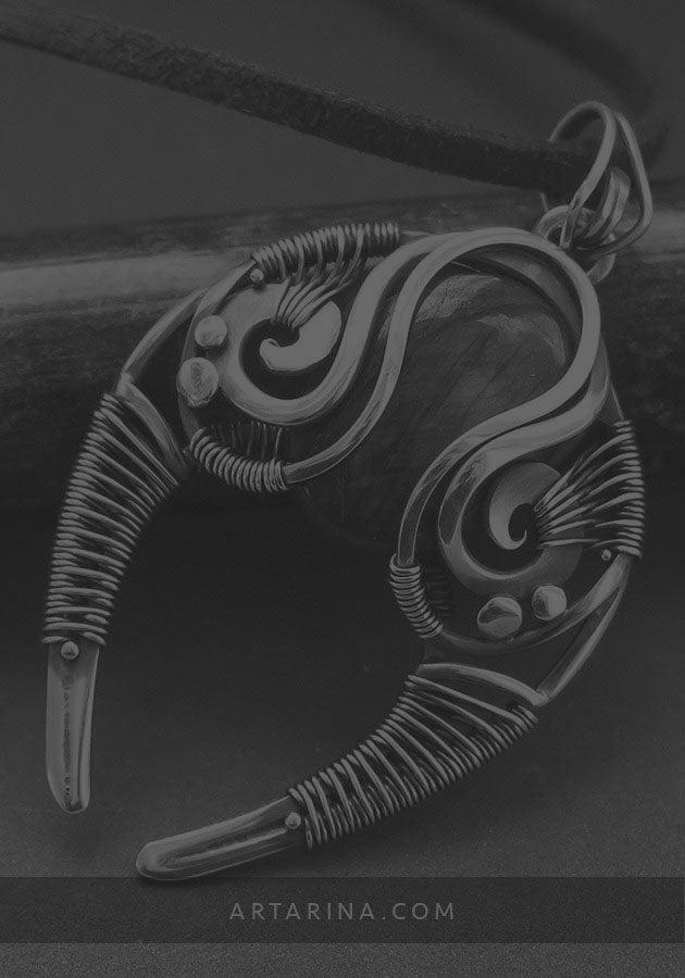 Goddess of Jewelry - a Labradorite Crescent Moon Necklace adorned with a Mythical Artifacts Silver Pendant. This exquisite piece channels celestial beauty and mystical power, reflecting the goddess's grace and strength. Labradorite's iridescent hues capture the moon's enchanting glow, while the silver pendant symbolizes ancient wisdom and divine protection. Embrace the magic of this necklace as it merges myth with modern elegance, invoking the spirit of timeless adornment and celestial guidance.
